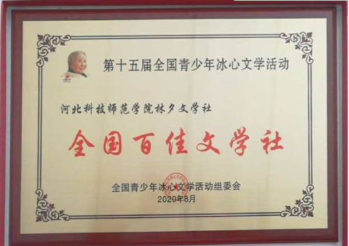 近日,由中国智慧工程研究会、北京钟南山创新公益基金会主办、中国散文学会等单位协办的第十五届全国青少年冰心文学活动圆满结束,我校人人综合网林夕文学社参评的多件作品获奖。其中和墨真的《心之所向》等10件作品获得一等奖;屈可欣的《初次》等17件作品获得二等奖;李雪梅的《春之伤》等23件作品获得三等奖。袁宏宾、王丹、刘素文三位教师获得优秀辅导教师奖。林夕文学社获得“全国百佳文学社”荣誉称号。