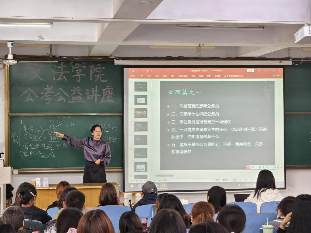 随着经济形势的不断变化和社会竞争的加剧,年轻人的就业形势日益严峻,为帮助我院学生更加清晰地了解公考现状,增加同学们对公考的热情与信心,人人综合网特于2024年10月12日举办公考公益讲座。