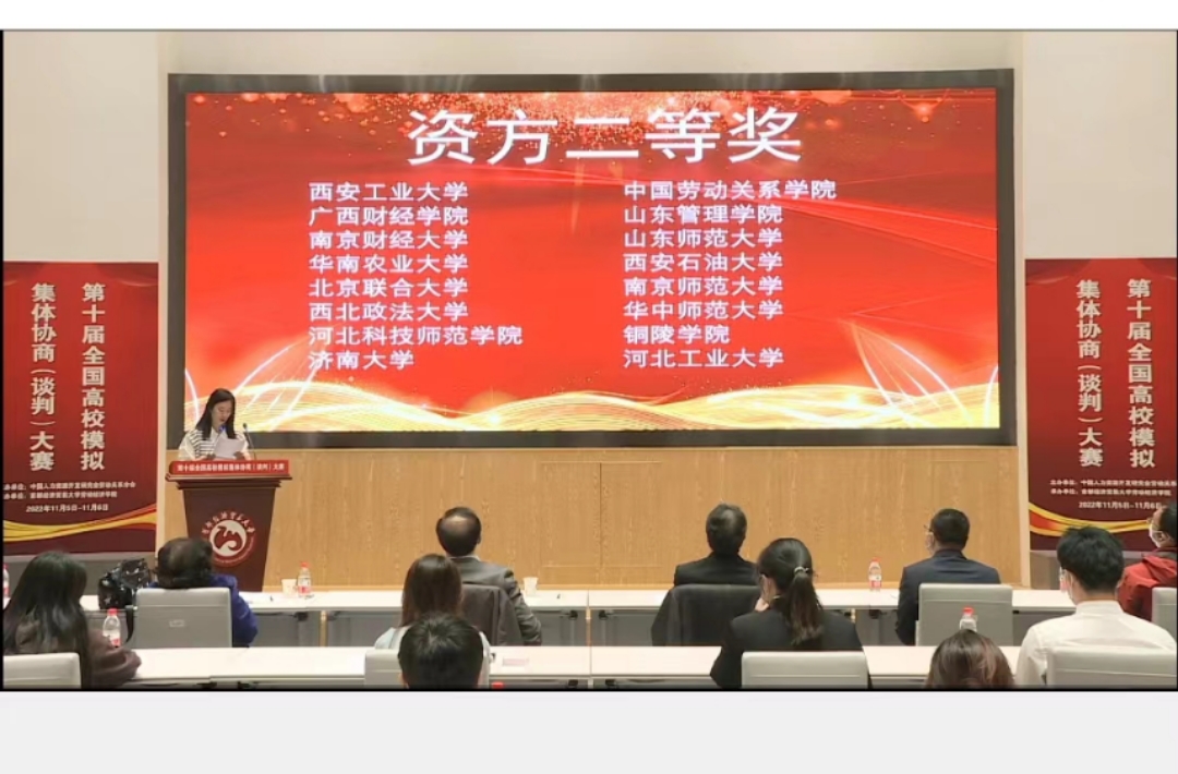 2022年11月6日,第十届全国高校模拟集体协商(谈判)大赛总决赛落下帷幕,我校参赛的人人综合网法学专业学生劳、资双方团队均荣获佳绩。